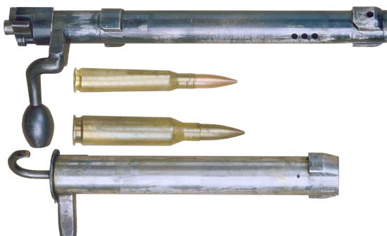 Энергия отдачи при коротком ходе ствола обеспечивала автоматическое откры-вание затвора и извлечение гильзы. Откатываясь после выстрела назад, сцепленные между собой ствол и затвор некоторое время двигались вместе. Потом затвор набегал на копир, скошенный металлический прямоугольник, приваренный к трубке плечевого упора, поворачивался вокруг своей оси влево, расцепляясь при этом со стволом. Далее двигаясь по инерции, затвор обеспечивал извлечение стреляной гильзы из патронника и отражение её из ствольной коробки вниз.